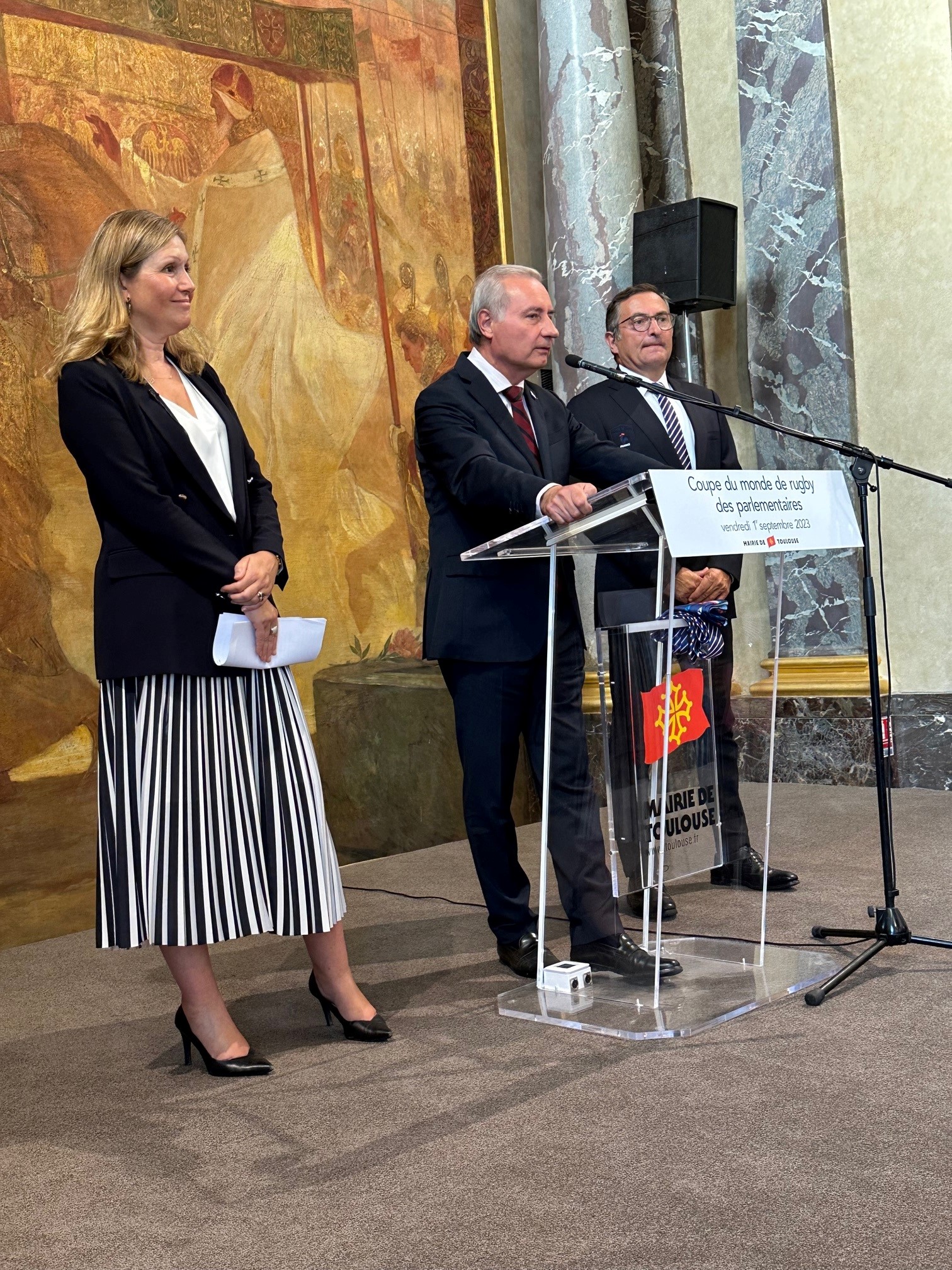 Le maire de Toulouse a également pris la parole pour exprimer sa fierté et sa gratitude d'accueillir cette soirée inaugurale dans sa ville. Il a mis en avant l'engagement de la municipalité à soutenir le sport et les événements internationaux, comme cette Coupe du du Monde de rugby des Parlementaires.