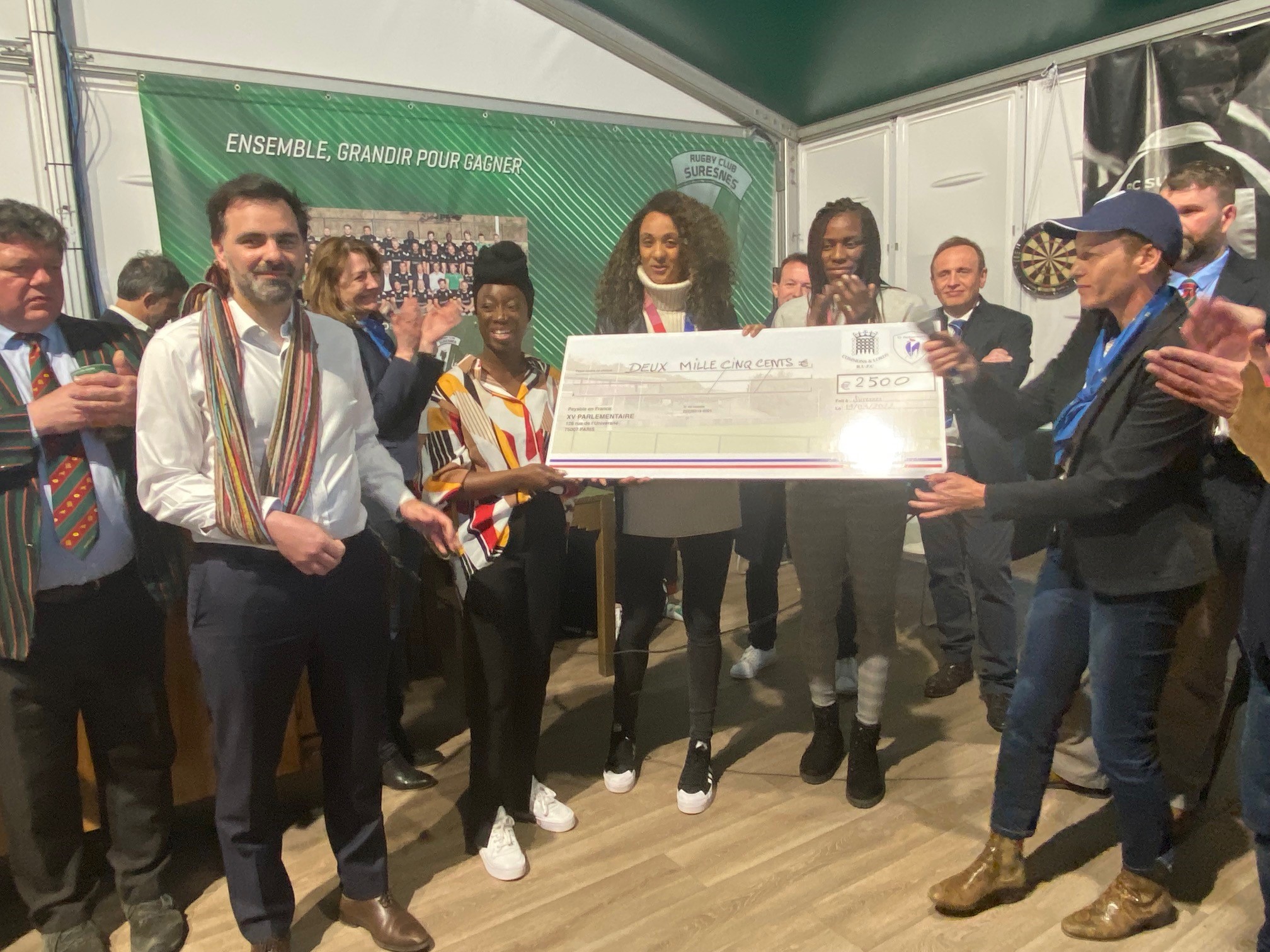 Remise du chèque à l'issue de la victoire des parlementaires français